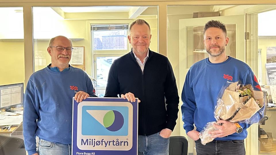 Florø Bygg får sertifiseringa "Miljøfyrtårn" Ordførar Bengt Solheim-Olsen delte ut sertifiseringa og beviset til Florø Bygg under ei lita markeringa hos verksemda torsdag 26. februar.