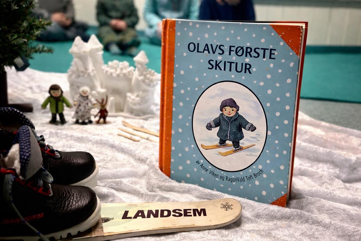 Leselyst i Krokane barnehage - Olavs første skiturMidt i eit vinterlandskap får boka "Olavs første skitur" stå i sentrum. Rundt boka er det visuell støtte med spor av snø, ski og små figurar som leiar barna inn i forteljinga. Lesestunda blir ei oppleving av ord, bilete og fantasi. Det visuelle og taktile uttrykket inviterte til undring, gjenkjenning og samtaler - og gjorde boka levande og nær for barna