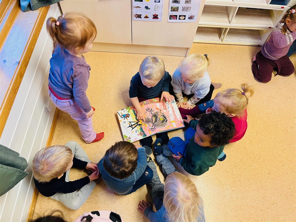 Det lesast i samlinger, spontant, i kvilestunder, under måltid, i frileiken og som inspirasjon til gruppeaktiviteter. Alle avdelingane har bøker synlig og tilgjengelig for barna i fleire rom, slik at det skal være lett for barna å kunne be om å bli lest for. Men og for at barna skal kunne sitte å «lese» og utforske bøkene på eiga hand. Og så er det ekstra kjekt for oss voksne å sjå barna si glede over bøkene, og at barna sjølv organiserer ei samling og har lesestund med «høgtlesing» for kvarandre.