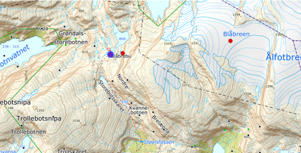 Vårt forslag til namn er Blåbrebu. Namnet er ikkje brukt i Kinn eller kringliggande kommunar så langt vi kan sjå. Namnet er i bruk, har historisk forankring og finnast i kart over området.