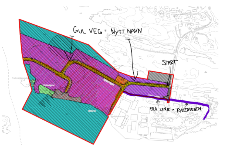 Gi namneforslag på ny veg til nytt industriområde i GunhildvågenVegen i det nye bustadområdet på sørsida av Storåsen får namnet Søre Storåsen.