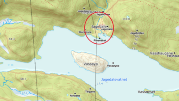 Vedtak områdenamn - Jagedalen I medhald av §9 i forskrifta til stadnamnlova melder vi om vedtak av nytt områdeadressenamn for gards- og bruksnummer 84/25 ved Jagedalsvatnet.